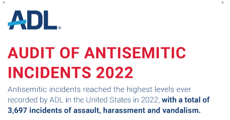 על פי דו"ח שפרסם ארגון ה ADL ביחס לנתוני האנטישמיות בארה"ב בשנת 2022, יש בהחלט מקום לדאגה: