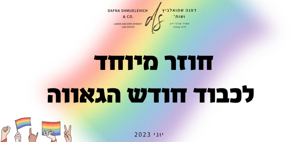 בפתחו של חודש הגאווה, מוגש לכם חוזר לקוחות מיוחד, פרי המחלקה להעסקה הוגנת במשרדנו, לציון השגי המאבק לשוויון זכויות של כלל חברי וחברות הקהילה הגאה (LGTBQ). החגיגות הססגוניות נועדו להעצים את כוחה של הקהילה, ולאפשר לחבריה תחושת שייכות ולגיטימיות. הנראות מייצרת שיח ציבורי בנושאים חשובים, מאפשרת הזדהות מופגנת עם מטרותיה של הקהילה, ומעודדת הצטרפות חברים נוספים להרגיש נוחות ושלמות עם נטייתם המינית, תהיה אשר תהיה.