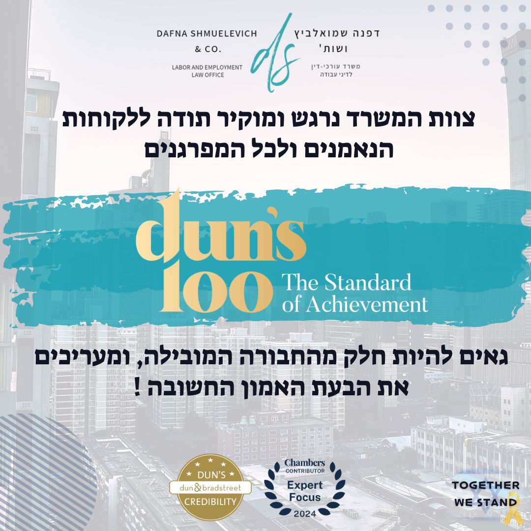 דירוג משרדנו בקבוצת הדרוג הראשונה של DUNS 100